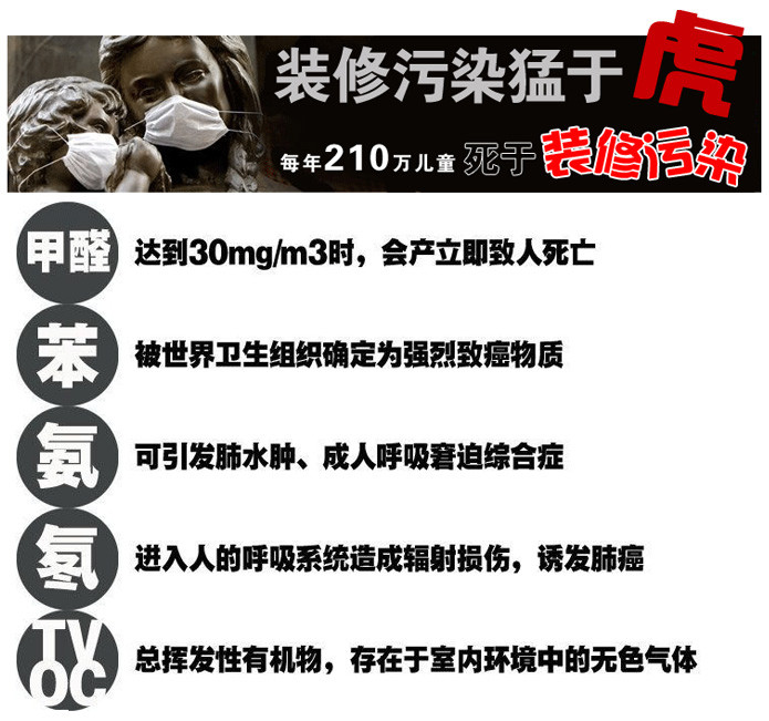 在裝修污染中,危害較大,也較難以防治的正是大家熟知的甲醛,也是裝修污染的頭號殺手。